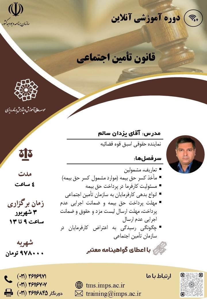 دوره آموزشی قانون تامین اجتماعی 3 شهریور ماه برگزار شد.