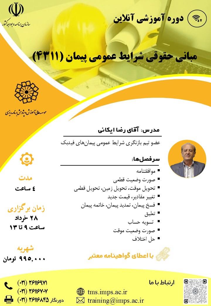 دوره آموزشی مبانی حقوقی شرایط عمومی پیمان (4311) 26 مرداد ماه برگزار شد.