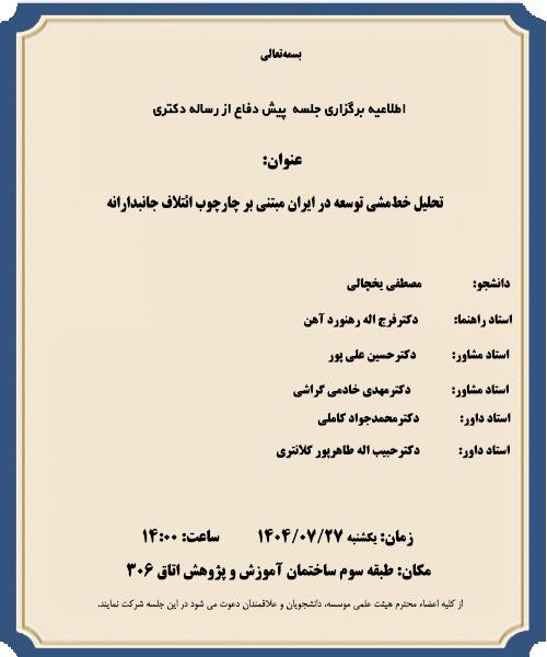 اطلاعیه پیش دفاع آقای مصطفی یخچالی - دانشجوی دکتری مدیریت‌دولتی