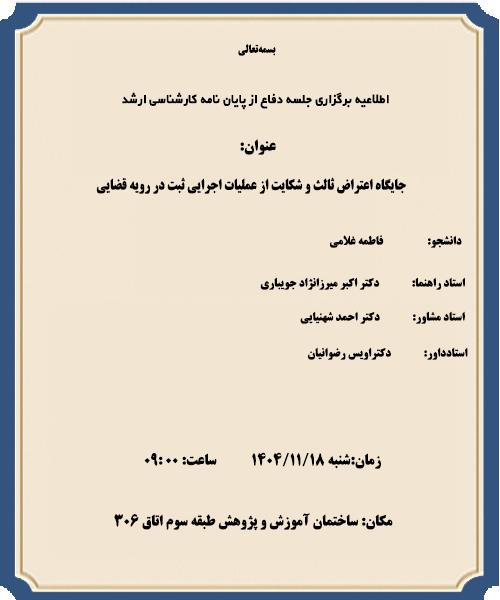 اطلاعیه دفاع خانم فاطمه غلامی - دانشجوی دکتری حقوقخصوصی