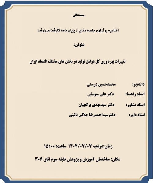 اطلاعیه دفاع اقای محمدحسین درستی - دانشجوی کارشناسیارشد مهندسی صنایع